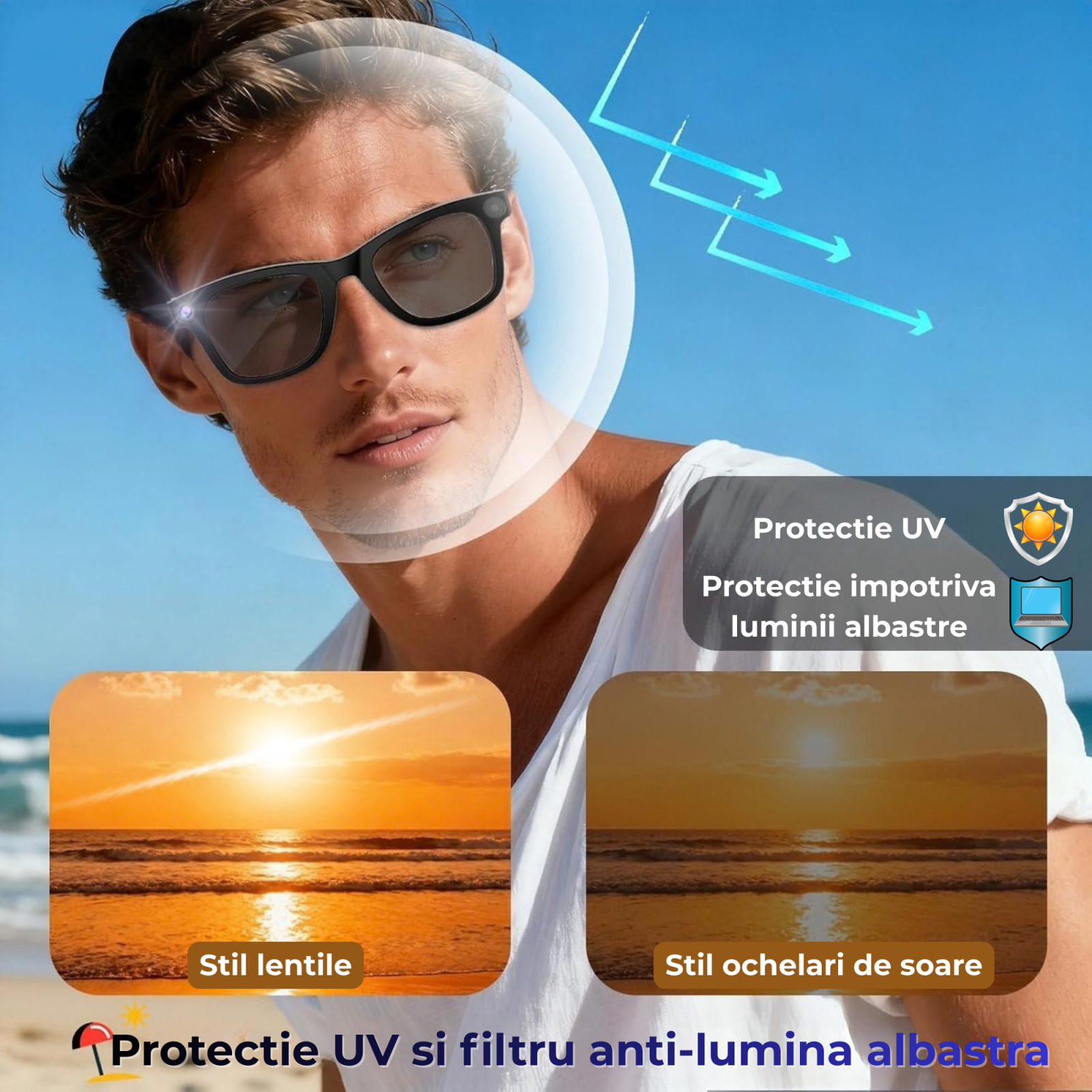 Ochelarii ofera filmare 1080P, captura foto, traducere in timp real, asistent vocal, redare audio open-ear si posibilitatea de a efectua apeluri hands-free.