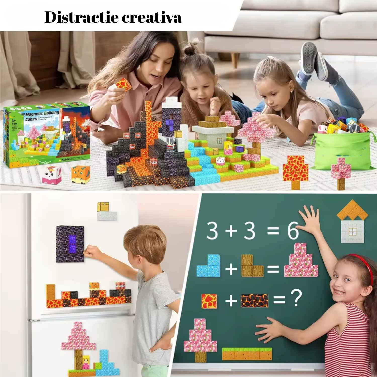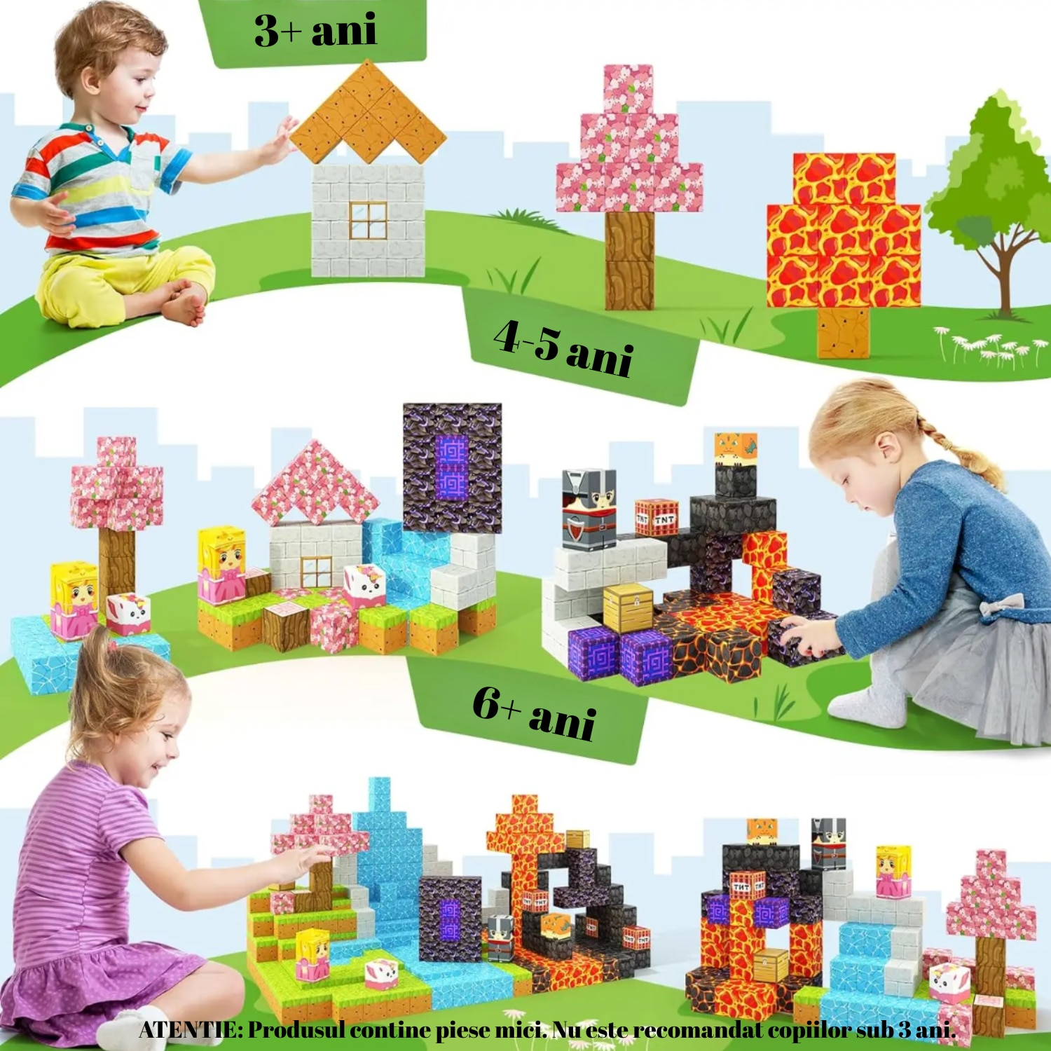 Descopera un mod inteligent si distractiv de a stimula creativitatea si dezvoltarea copilului tau cu Setul de Constructie Magnetic OnXsmart®, 128 Piese. Inspirat din universul Minecraft, acest set cu cuburi mari de 25 mm si magneti puternici permite asamblari 3D variate si sigure, oferind ore intregi de joaca activa si educativa.